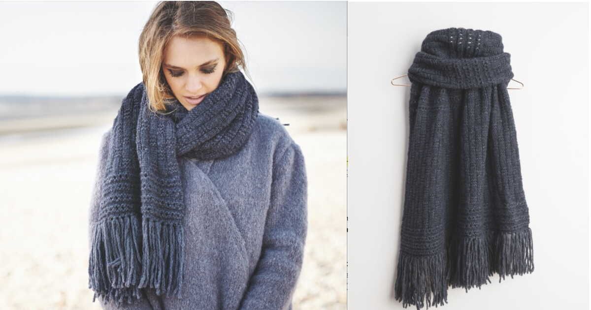 Réalisez une écharpe douce et enveloppante avec ce modèle en fil d'alpaga. Combinant un point ajouré et un point en relief, cette large étole saura vous séduire. De plus, pour une touche supplémentaire, elle est agrémentée de longues franges confectionnées dans le même fil.