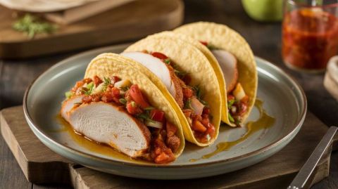 Dans une autre poêle, réchauffez les tortillas de maïs pendant une minute de chaque côté. Ensuite, garnissez chaque tortilla avec le mélange de dinde épicée, puis pliez-les pour former des tacos. En guise de touche finale, un filet de jus de citron vert apportera une acidité rafraîchissante.