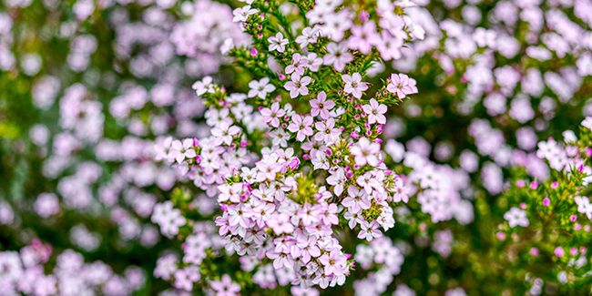 La floraison de la diosmée hirsute est un spectacle à ne pas manquer. Elle commence à la fin de l'hiver, en février ou mars, et se prolonge jusqu'à juin ou juillet. De petits bouquets de fleurs étoilées, de 5 à 7 mm de diamètre, se parent de teintes allant du blanc rosé au rose vif. Une fois pollinisés, des fruits verts contenant des graines noires se forment, offrant ainsi une méthode de reproduction naturelle pour cette plante aromatique.