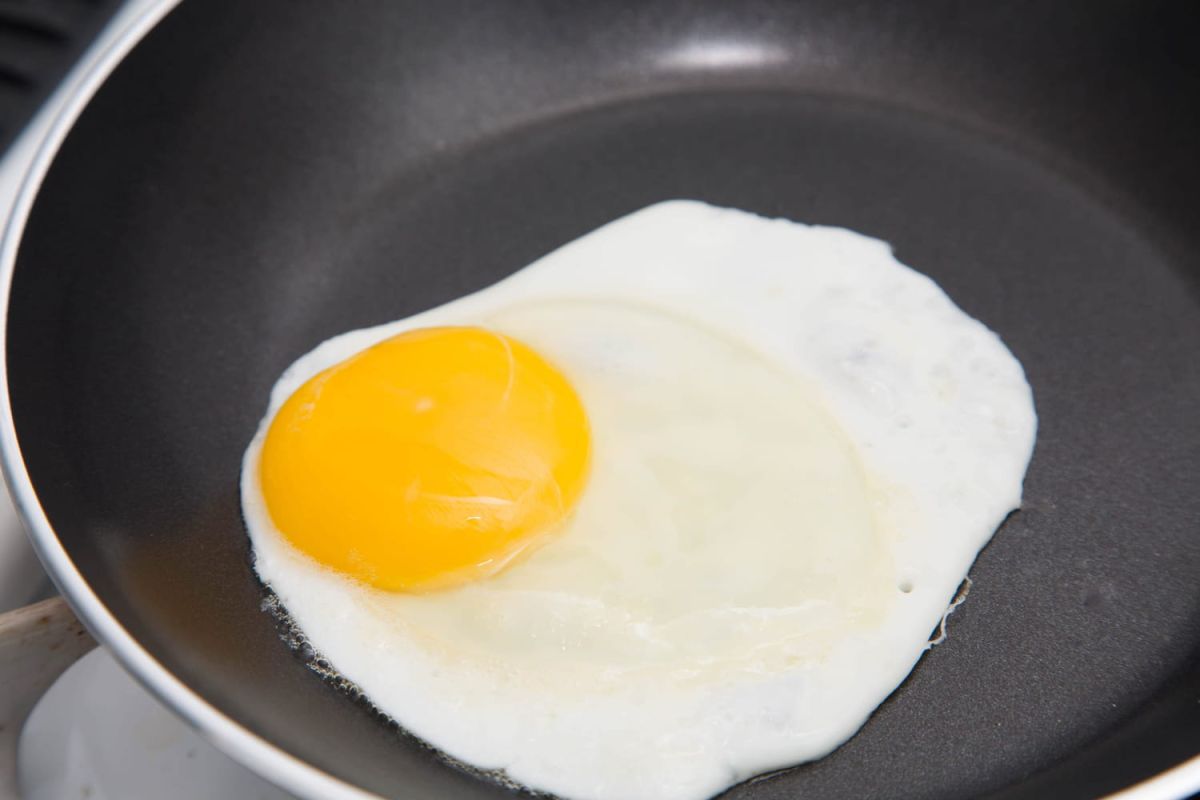 - Une fois l'œuf dans la poêle, allumez la plaque à feu moyen-doux pour une cuisson lente.