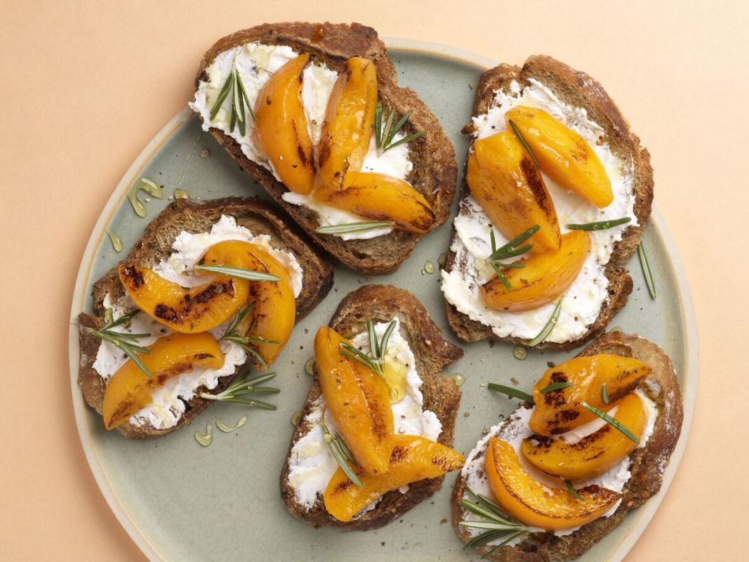 Toast au fromage de chèvre et pêche rôtie