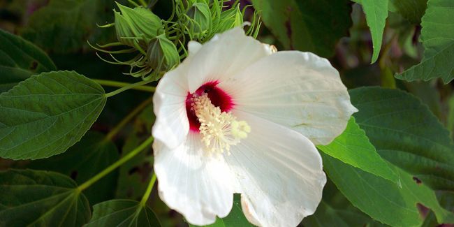 Tout au long de l'été, l'hibiscus des marais offre de grandes fleurs en forme d'entonnoir, atteignant 10 à 20 centimètres de diamètre. Ces fleurs, qui se déclinent en diverses teintes telles que le blanc, le rose et le rouge cramoisi, ne durent qu'un à deux jours, mais leur floraison se renouvelle continuellement de juillet à octobre. Leur élégance rappelle celle des fleurs de rose trémière (Alcea rosea).