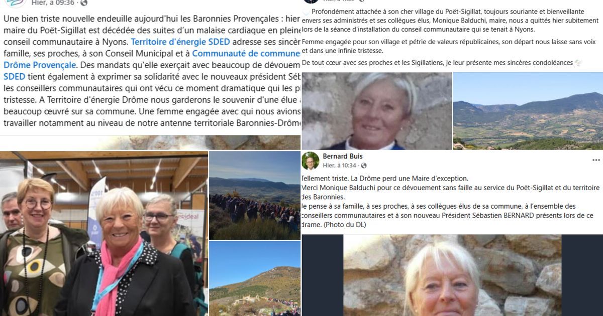 Un profond chagrin s'est abattu sur la Drôme suite au décès tragique de Monique Balduchi, maire du Poët-Sigillat, survenu le mercredi 15 avril 2026. À l'âge de 76 ans, l'élue s'est effondrée lors du conseil d'installation de la communauté de communes des Baronnies à Nyons, victime d'une crise cardiaque, suscitant une onde de choc parmi ses collègues et la population locale.